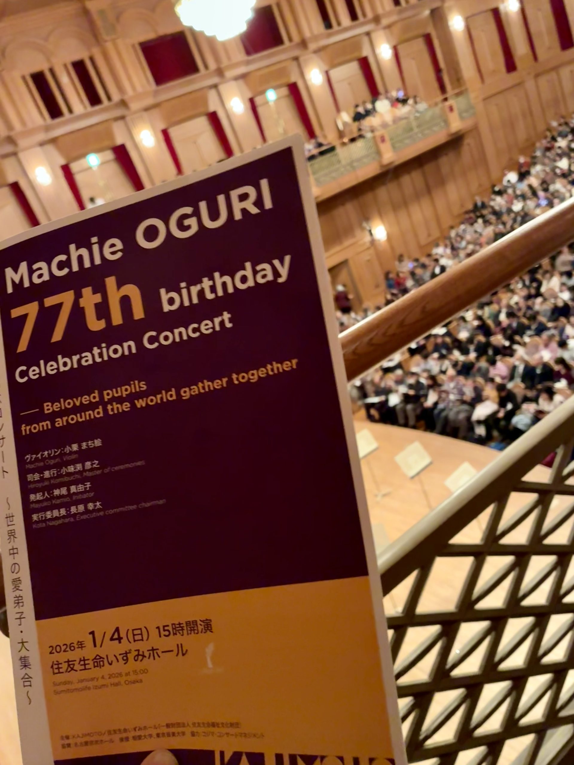 小栗まち絵先生喜寿記念コンサートへ伺いました。世界中から愛弟子でいらっしゃるソリストの方々が集い、素晴らしい音楽を堪能させて頂きました。